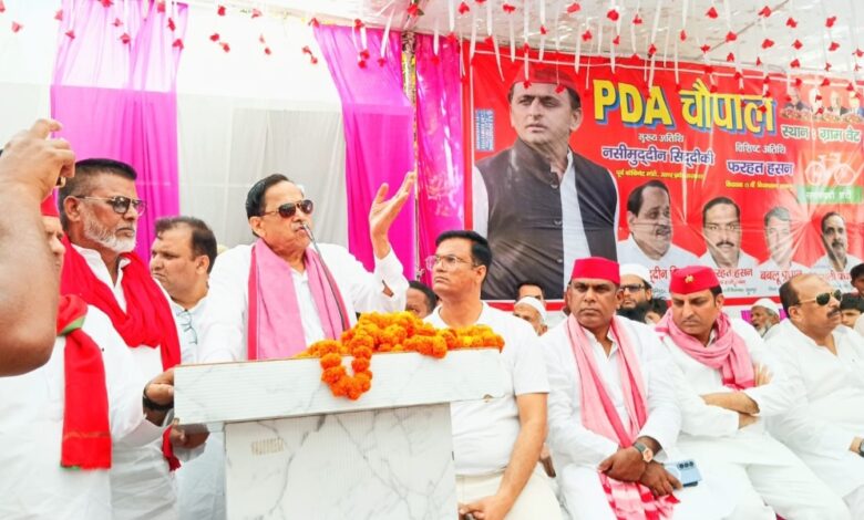 पूर्व मंत्री नसीमुद्दीन सिद्दकी ने अपने संबोधन में कहा कि पीडीए समाज को मजबूत करने के लिए कार्यकर्ताओं को अपनी नींद छोड़कर गांव-गांव जाकर अनुसूचित जाति , अनुसूचित जनजाति, अन्य पिछड़ा वर्ग और अल्पसंख्यक समुदायों को एकजुट करना होगा। उन्होंने बताया कि वह 15,813 लोगों के साथ समाजवादी पार्टी में शामिल हुए थे। सिद्दकी ने मौजूदा सरकार पर जुल्म, ज्यादती, महंगाई और बेरोजगारी बढ़ाने का आरोप लगाया। उन्होंने कहा कि किसानों को उनका हक नहीं मिल रहा है, गन्ना किसानों को उनके मूल्य का भुगतान नहीं हो रहा है और दैवीय आपदा में भी मुआवजा नहीं दिया जा रहा है। उन्होंने जोर देकर कहा कि पीडीए के तहत वंचित वर्गों को जोड़कर सपा की सरकार बनानी है, ताकि अखिलेश यादव दूसरी बार उत्तर प्रदेश के मुख्यमंत्री बन सकें। इस दौरान राष्ट्रीय लोक दल छोड़कर सपा में शामिल हुए पूर्व प्रधान शेर अली का लाल टोपी पहनाकर स्वागत किया गया। इस अवसर पर जिलाध्यक्ष आनंद गुर्जर, राष्ट्रीय प्रवक्ता सुधीर चौहान,अख्तर मालिक, साजिद चौधरी रिजवान चौधरी, जावेद अली, नन्हे खां, राशिद अली, अब्दुल खान, सरताज, भूरे खान, खालिद अली, रहमान, जुल्फिकार, ताहिर सहित सैकड़ों लोग मौजूद रहे।